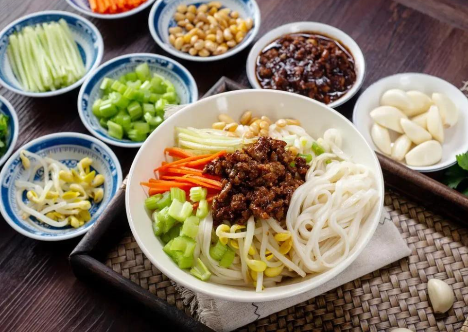 Zhajiangmian is a beloved traditional Beijing noodle dish and a cornerstone of Jing cuisine, widely enjoyed throughout the Beijing-Tianjin-Hebei region. At its heart are chewy noodles tossed with a rich, savory “zhajiang” (fried bean sauce) and an array of fresh seasonal vegetable toppings—known as caima.