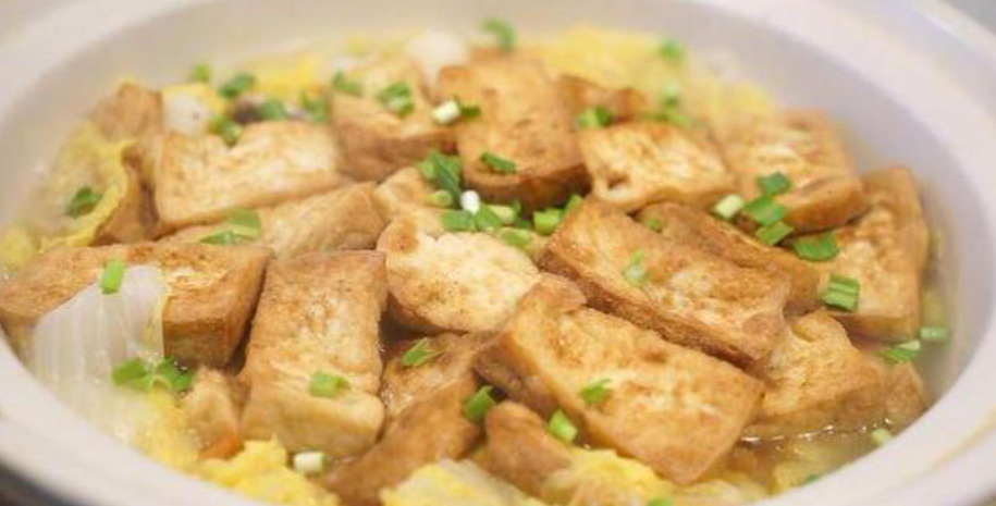 - Leave a bit of oil in the pan. Sauté whole or crushed garlic cloves until fragrant. Layer the soaked vermicelli at the bottom of the pot, followed by the chopped cabbage, and finally place the fried tofu on top. Season with 1 tablespoon light soy sauce, ½ teaspoon salt, and 1 tablespoon oyster sauce.